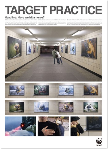 Uma agência de publicidade chinesa, a fim de despertar a consciência ambiental das pessoas, criou um anúncio no qual os animais portam armas e apontam para as pessoas, como se treinassem tiro ao alvo. A intenção é alertar para a extinção dos animais causada pelo homem nos últimos 500 anos. A mensagem é "E se você estivesse do outro lado?".